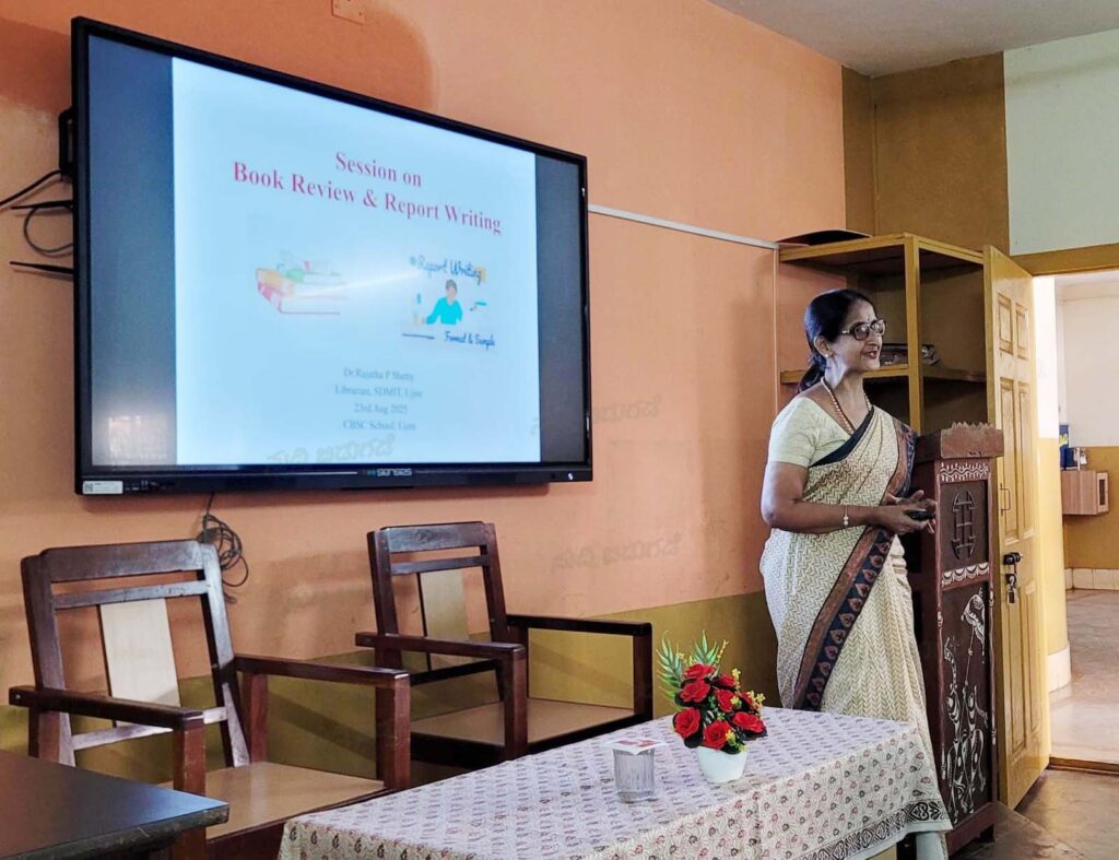 ಉಜಿರೆ :ಆ23 ಎಸ್.ಡಿ.ಎಂ (ಸಿ.ಬಿ.ಎಸ್.ಇ) ಶಾಲೆಯ ಪ್ರೌಢಶಾಲ ಶಿಕ್ಷಕರಿಗೆ “ಅಭಿವ್ಯಕ್ತಿ ಕೌಶಲ” ಕಾರ್ಯಗಾರ ಆಯೋಜಿಸಲಾಗಿತ್ತು. ಸಂಪನ್ಮೂಲ ವ್ಯಕ್ತಿಯಾಗಿ ಎಸ್.ಡಿ.ಎಂ ಐ.ಟಿ. ಕಾಲೇಜಿನ ಮುಖ್ಯ ಗ್ರಂಥಪಾಲಕ ಡಾ.ರಜತ ಅವರು ಪುಸ್ತಕ ವಿಮರ್ಶೆ, ಲೇಖನ ಬರಹ, ವರದಿ ತಯಾರಿಯ ಕುರಿತಾದ ವಿಸ್ತೃತ ಮಾಹಿತಿ ಹಂಚಿಕೊಂಡರು.