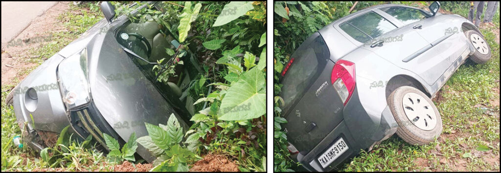 ಮುಂಡಾಜೆ: ಚಾಲಕನ ನಿಯಂತ್ರಣ ತಪ್ಪಿ ಮೋರಿಗೆ ಜಾರಿದ ಕಾರು