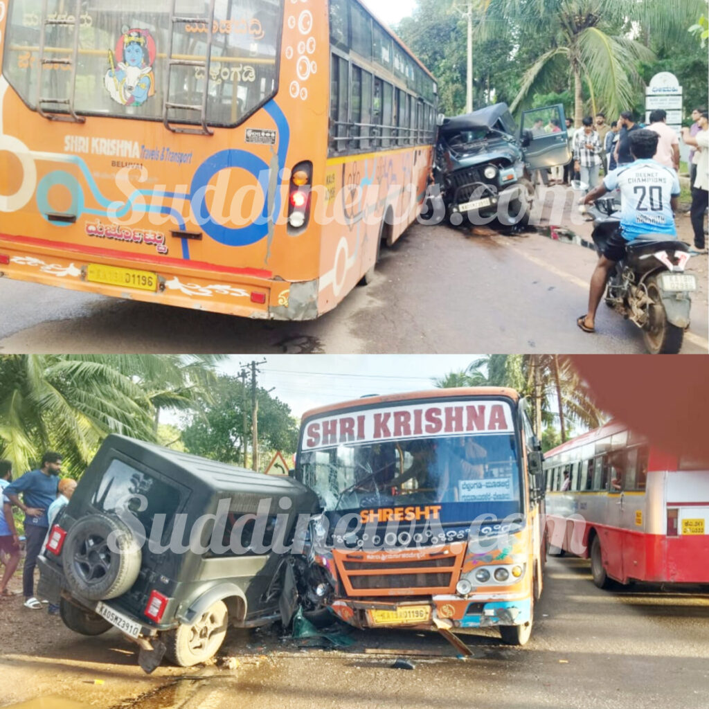 ವೇಣೂರು: ಬಸ್ – ಜೀಪು ಡಿಕ್ಕಿ