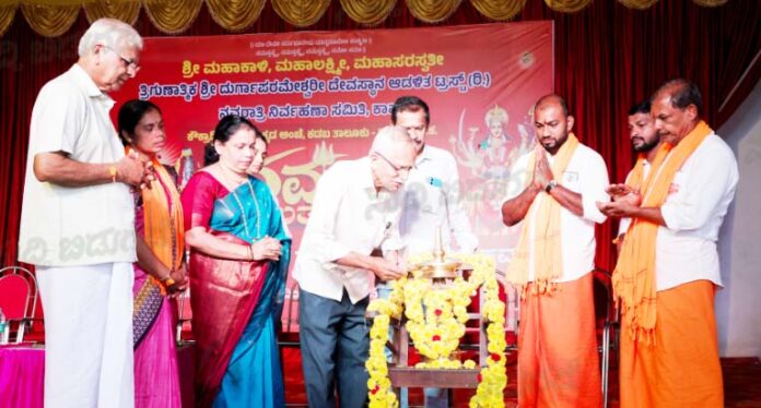 ದೇವಸ್ಥಾನದ ಅರ್ಚಕ ಮಂಜುನಾಥ ಭಟ್ ಹಾಗೂ ತಂಡದವರ ಪೌರೋಹಿತ್ಯದಲ್ಲಿ ಹಿಂದೂ ಧಾರ್ಮಿಕ ಮುಖಂಡ, ಉದ್ಯಮಿ ಕಿರಣ್ ಚಂದ್ರ ಪುಷ್ಪಗಿರಿ ಅವರು ಮಹಾದ್ವಾರದ ಶಿಲಾನ್ಯಾಸ ನೆರವೇರಿಸಿ ಮಾತನಾಡಿದರು. ಶ್ರೀ ತ್ರಿಗುಣಾತ್ಮಿಕ ದುರ್ಗಾಪರಮೇಶ್ವರಿ ದೇವಸ್ಥಾನವು ಅತ್ಯಂತ ಕಾರಣಿಕವುಳ್ಳ ದೇವಿ ದೇವಸ್ಥಾನವಾಗಿದ್ದು, ದೇವಸ್ಥಾನದ ಆಡಳಿತ ಮಂಡಳಿ ಹಾಗೂ ಭಕ್ತಾದಿಗಳ ಅಭಿಲಾಷೆಯಂತೆ ಜಗನ್ಮಾತೆಯ ಅನುಗ್ರಹದಿಂದ ನಿರ್ಮಾಣವಾಗಲಿರುವ ಈ ನೂತನ ಮಹಾದ್ವಾರವು ಶೀಘ್ರದಲ್ಲೇ ಆಕರ್ಷಕ ರೂಪ ಪಡೆಯಲಿ ಎಂದು ಅವರು ಶುಭಹಾರೈಸಿದರು.