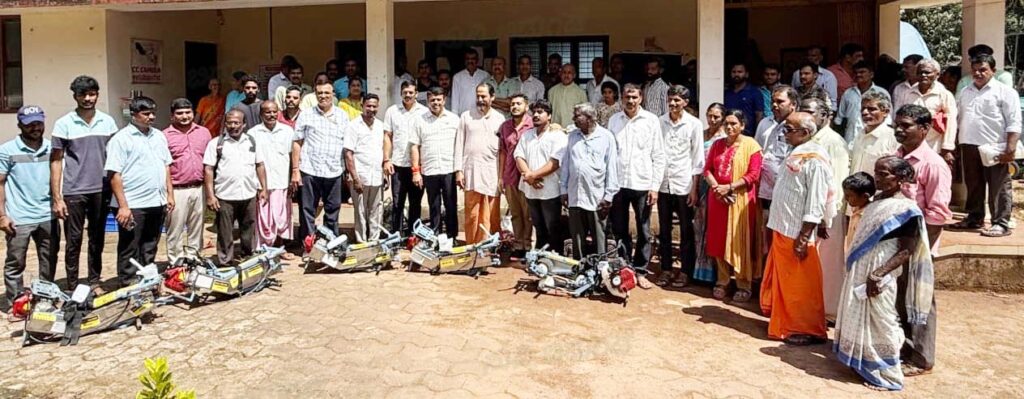 ಬೆಳ್ತಂಗಡಿ: 2025-2026ನೇ ಸಾಲಿನ ಕೇಂದ್ರ ಪುರಸ್ಕೃತ ಕೃಷಿ ಯಾಂತ್ರೀಕರಣ ಉಪ ಅಭಿಯಾನ (SMAM) ಯೋಜನೆಯಡಿ ತೋಟಗಾರಿಕೆ ಇಲಾಖೆ ಬೆಳ್ತಂಗಡಿ ವತಿಯಿಂದ ವಿವಿಧ ಕೃಷಿ ಯಂತ್ರೋಪಕರಣಗಳ ಪ್ರಾತ್ಯಕ್ಷತೆ ಹಾಗೂ ರೂ.75000 ಸಹಾಯ ಧನದಲ್ಲಿ ತಾಲೂಕಿನ 56 ಜನ ಅರ್ಹ ಫಲಾನುಭವಿಗಳಿಗೆ ಮೆನೆಬ್ಸ್ ಇಂಜಿನಿಯರಿಂಗ್ ಸಲ್ಯೂಷನ್ಸ್ ಶಿವಮೊಗ್ಗ ಕಂಪೆನಿಯವರು ತಯಾರಿಸಿದ ಅಡಿಕೆ ಮರ ಹತ್ತುವ ಯಂತ್ರವನ್ನು ಶಾಸಕ ಹರೀಶ್ ಪೂಂಜ ಅವರು ವಿತರಿಸಿದರು.