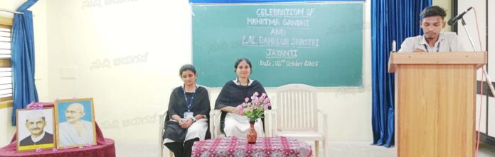 ಕಾರ್ಯಕ್ರಮದ ಅಧ್ಯಕ್ಷತೆಯನ್ನು ವಹಿಸಿದ ವಿದ್ಯಾರ್ಥಿ ನಾಯಕಿ ವೀಕ್ಷಾದೀಪ ಇವರು ಮಾತನಾಡುತ್ತಾ ‘ವಿದ್ಯಾರ್ಥಿಗಳು ಗಾಂಧೀಜಿ ಹಾಗೂ ಶಾಸ್ತ್ರೀಜಿಯವರ ತತ್ವಗಳನ್ನು ಮೈಗೂಡಿಸಿಕೊಂಡಾಗ ಮಾತ್ರ ಈ ಆಚರಣೆಗಳು ಪೂರ್ಣವಾಗಲು ಸಾಧ್ಯ. ಜೀವನದಲ್ಲಿ ಪ್ರೀತಿ ಹಂಚುತ್ತಾ ಬಾಳಿ, ಮಾನವ ಜನ್ಮವನ್ನು ಸಾರ್ಥಕಗೊಳಿಸಿ’ ಎಂದರು.