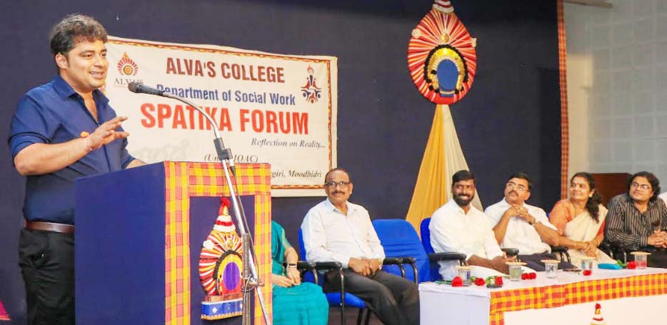 ಮೂಡುಬಿದ್ರೆ ಆಳ್ವಾಸ್ ಕಾಲೇಜಿನ (ಸ್ವಾಯತ್ತ) ಸಮಾಜಕಾರ್ಯ ವಿಭಾಗದ ವಿದ್ಯಾರ್ಥಿ ವೇದಿಕೆ ಸ್ಪಟಿಕ ಫೋರಂನ ಈ ಶೈಕ್ಷಣಿಕ ವರ್ಷದ ಚಟುವಟಿಕೆಗಳನ್ನು ಉದ್ಘಾಟಿಸಿ ಅವರು ಮಾತನಾಡಿದರು.