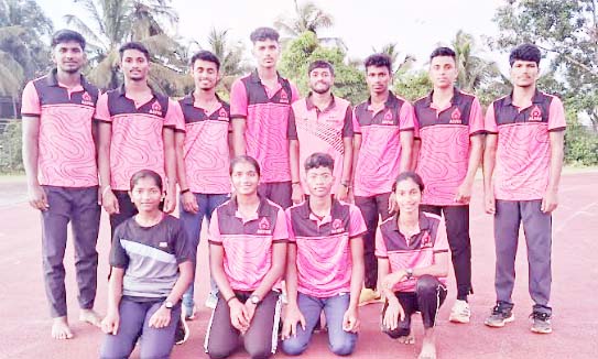 ಬಾಲಕರ ವಿಭಾಗ: ನೋಯಿಲ್ (ಉದ್ದ ಜಿಗಿತ), ಗುರು (ಹೆಪ್ಟಾಥ್ಲಾನ್), ದಯಾನಂದ (400 ಮೀ., 4 *400 ರಿಲೇ), ದರ್ಶನ (5 ಕಿ.ಮೀ ನಡಿಗೆ), ಕವೀಶ್ ನಾಯ್ಕ (ಜಾವಲಿನ್ ಎಸೆತ), ಮನಿಷ್ (ಉದ್ದ ಜಿಗಿತ), ಲೋಹಿತ್ ಗೌಡ (ಉದ್ದ ಜಿಗಿತ), ನವೀನ್ (ಉದ್ದ ಜಿಗಿತ), ಕೃಷ್ಣ ಪ್ರಕಾಶ (ಜಾವಲಿನ್ ಎಸೆತ), ಮೈಲಾರಿ (ಜಾವಲಿನ್ ಎಸೆತ), ಪ್ರಣವ್ (ತ್ರಯಥ್ಲಾನ್ ಎ), ಸುಭಾಶ್ (ತ್ರಯಥ್ಲಾನ್ ಸಿ). ಯಶವಂತ (800 ಮೀ.), ಆದರ್ಶ್ (ತ್ರಯಥ್ಲಾನ್ ಬಿ)