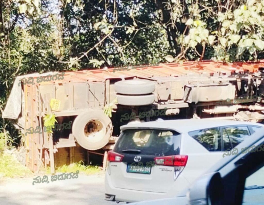 ಬೆಳ್ತಂಗಡಿ: ಚಿಕ್ಕಮಗಳೂರು ಮತ್ತು ದಕ್ಷಿಣ ಕನ್ನಡ ಜಿಲ್ಲೆಗಳನ್ನು ಸಂಪರ್ಕಿಸುವ ಪ್ರಸಿದ್ಧ ಚಾರ್ಮಾಡಿ ಘಾಟ್ ರಸ್ತೆಯಲ್ಲಿ ಲಾರಿ ಪಲ್ಟಿಯಾದ ಘಟನೆ ಅ.8ರಂದು ನಡೆದಿದೆ.