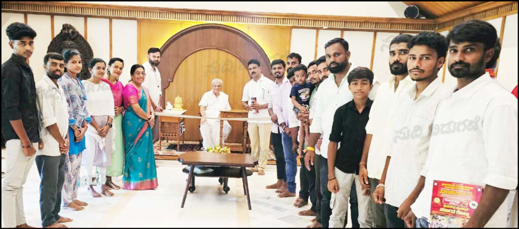 ಧರ್ಮಸ್ಥಳ: ಎರ್ಮುಂಜಬೈಲ್ ನಾರ್ಯ, ಪೊದುಂಬಿಲ ಶ್ರೀ ಸುಬ್ರಹ್ಮಣ್ಯ ದೇವಸ್ಥಾನ ಗ್ರಾಮ ದೈವಗಳ ಉತ್ಸವ ಸಮಿಯ ಆಶ್ರಯದಲ್ಲಿ ಶ್ರೀ ಕೃಷ್ಣ ಜನ್ಮಾಷ್ಟಮಿ ಸಮಿತಿ ಮತ್ತು ಶ್ರೀ ಷಣ್ಮುಖ ಭಜನಾ ಮಂಡಳಿ ಹಾಗೂ ಊರವರ ಸಹಕಾರದೊಂದಿಗೆ ದೀಪಾವಳಿ ಹಬ್ಬದ ಪ್ರಯುಕ್ತ ನಡೆಯುವ ಕೆಸರ್ ದ ಕಂಡಡ್ ಪರ್ಬದ ಗೊಬ್ಬು ಕಾರ್ಯಕ್ರಮದ ಆಮಂತ್ರಣ ಪತ್ರಿಕೆಯನ್ನು ಅ.14ರಂದು ಧರ್ಮಸ್ಥಳ ಧರ್ಮಾಧಿಕಾರಿ, ರಾಜ್ಯಸಭಾ ಸದಸ್ಯ ಡಾ.ಡಿ.ವೀರೇಂದ್ರ ಹೆಗ್ಗಡೆಯವರಿಗೆ ಊರವರು ಶ್ರೀ ಕ್ಷೇತ್ರ ಧರ್ಮಸ್ಥಳಕ್ಕೆ ಭೇಟಿ ನೀಡಿ ಡಾ.ಹೆಗ್ಗಡೆ ಅವರಿಗೆ ಆಮಂತ್ರಣ ನೀಡಲಾಯಿತು.
