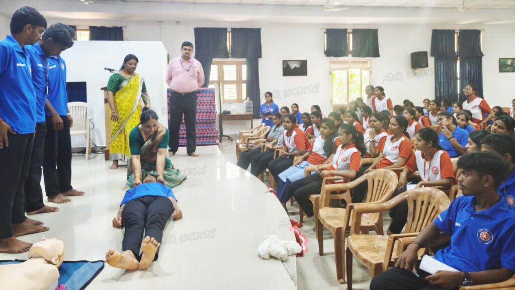 ಉಜಿರೆ: ಶ್ರೀ ಧರ್ಮಸ್ಥಳ ಮಂಜುನಾಥೇಶ್ವರ ಪದವಿ ಪೂರ್ವ ಕಾಲೇಜಿನ ರಾಷ್ಟ್ರೀಯ ಸೇವಾ ಯೋಜನೆ ಘಟಕ ಮತ್ತು ಜೂನಿಯರ್ ರೆಡ್ ಕ್ರಾಸ್ ಆಶ್ರಯದೊಂದಿಗೆ ಮಂಗಳೂರಿನ ನಿಟ್ಟೆ ಉಷಾ ನರ್ಸಿಂಗ್ ಸೈನ್ಸ್ ಕಾಲೇಜಿನ ಎನ್.ಎಸ್.ಎಸ್ ಘಟಕದ ಸಹಯೋಗದೊಂದಿಗೆ ಆಪತ್ಬಂಧು ಪ್ರಥಮ ಚಿಕಿತ್ಸೆ ಮತ್ತು ತುರ್ತು ಸೇವೆ ಕುರಿತು ಒಂದು ದಿನದ ಕಾರ್ಯಾಗಾರ ನಡೆಯಿತು.