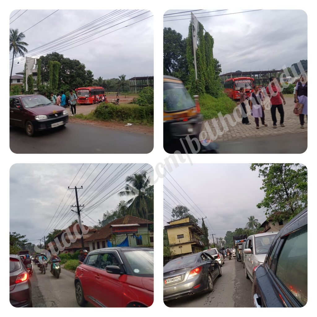 ಉಜಿರೆ: ಖಾಸಗಿ ಬಸ್-ಬೈಕ್ ನಡುವೆ ಅಪಘಾತ-ಟ್ರಾಫಿಕ್ ಜಾಮ್ October 18, 2025 0 FacebookTwitterWhatsApp ಉಜಿರೆ: ರೆಂಜಾಳ ಕ್ರಾಸ್ ಬಳಿ ಖಾಸಗಿ ಬಸ್ ಮತ್ತು ಬೈಕ್ ನಡುವೆ ಅಪಘಾತ ಸಂಭವಿಸಿದೆ. ಇದರಿಂದಾಗಿ ಉಜಿರೆಯಿಂದ ಟಿಬಿ ಕ್ರಾಸ್ ತನಕ ಟ್ರಾಫಿಕ್ ಜಾಮ್ ಉಂಟಾಗಿದೆ. ಈ ನಡುವೆ ರಸ್ತೆಗೆ ಅಡ್ಡಲಾಗಿ ನಿಂತಿದ್ದ ಖಾಸಗಿ ಬಸನ್ನು ಪಕ್ಕದ ಸ್ಥಳದಲ್ಲಿ ನಿಲ್ಲಿಸಿ, ಟ್ರಾಫಿಕ್ ಜಾಮ್ ಕ್ಲಿಯರ್ ಮಾಡಲಾಯಿತು. RELATED ARTICLESMORE FROM AUTHOR ಬೆಳ್ತಂಗಡಿ: ವಕೀಲರ ಭವನಕ್ಕೆ ಸಿಡಿಲಾಘಾತ-ಆತಂಕ ಸೃಷ್ಟಿ ಉಜಿರೆ: ಸಂಚಾರಿ ನಿಯಮ ಕುರಿತು ಮಾಹಿತಿ ಕಾರ್ಯಾಗಾರ ಉಜಿರೆ: ಎಸ್.ಡಿ.ಎಮ್ ಪಿ.ಯು ಕಾಲೇಜಿನಲ್ಲಿ ಪ್ರಥಮ ಚಿಕಿತ್ಸೆ ಕಾರ್ಯಾಗಾರ LEAVE A REPLY Cancel reply Please enter your comment! Please enter your name here You have entered an incorrect email address! Please enter your email address here Save my name, email, and website in this browser for the next time I comment. Δ