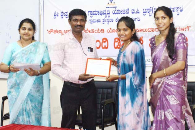ಬೆಳ್ತಂಗಡಿ: ಶ್ರೀ ಕ್ಷೇತ್ರ ಧರ್ಮಸ್ಥಳ ಗ್ರಾಮಾಭಿವೃದ್ಧಿ ಯೋಜನೆ ಲಾಯಿಲ ಗ್ರಾಮೀಣ ಶ್ರೇಷ್ಠತಾ ತರಬೇತಿ ಕೇಂದ್ರದಲ್ಲಿ ಕೌಶಲ್ಯಾಭಿವೃದ್ಧಿ ಯೋಜನೆಯಡಿ ಅ. 18ರಂದು ಮೆಹಂದಿ ಡಿಸೈನ್ ತರಬೇತಿಯ ಸಮಾರೋಪ ಕಾರ್ಯಕ್ರಮದಲ್ಲಿ ತರಬೇತಿ ಸಂಸ್ಥೆಯ ಪ್ರಾಂಶುಪಾಲ ರಮೇಶ್ ಅವರು ಮಾತನಾಡಿ ಮೆಹಂದಿ ಡಿಸೈನ್ನ್ನು ನಿರಂತರವಾಗಿ ಕಲಿಯಿವುದರಿಂದ ಹೆಚ್ಚು ಕೌಶಲ್ಯದ ಹೆಚ್ಚು ಆದಾಯ ಗಳಿಕೆ ಮಾಡಬಹುದು. ಸಂಸ್ಥೆಯು ಉಚಿತವಾಗಿ ನೀಡುವ ಉದ್ದೇಶವೇನಂದರೆ ಮಹಿಳೆಯರು ಇತರರಿಗೆ ಅವಲಂಬಿಸದೆ ಸ್ವಂತ ಉದ್ದಿಮೆ ಮಾಡಬೇಕು ಎನ್ನುವುದಾಗಿದೆ. ಇದರಿಂದ ಮಹಿಳೆ ಆತ್ಮಸ್ಥೆರ್ಯ ಹೆಚ್ಚಿಸಿಕೊಳ್ಳಬಹುದು. ಸಮಾಜದಲ್ಲಿ ಗೌರವ ಹಾಗೂ ಸ್ವಾವಲಂಬಿ ಬದುಕನ್ನು ಕಾಣಬಹುದು. ಈ ತರಬೇತಿಯು ಯಾವುದೇ ಬಂಡವಾಳ ಇಲ್ಲದೆ ಸಂಪಾದನೆ ಮಾಡುವ ಸ್ವಉದ್ಯೋಗವಾಗಿದೆ ಎಂದರು. ಇವರು ತರಬೇತಿ ಅಭ್ಯರ್ಥಿಗಳಿಗೆ ಪ್ರಮಾಣಪತ್ರ ವಿತರಿಸಿ ಶುಭಹಾರೈಸಿದರು.