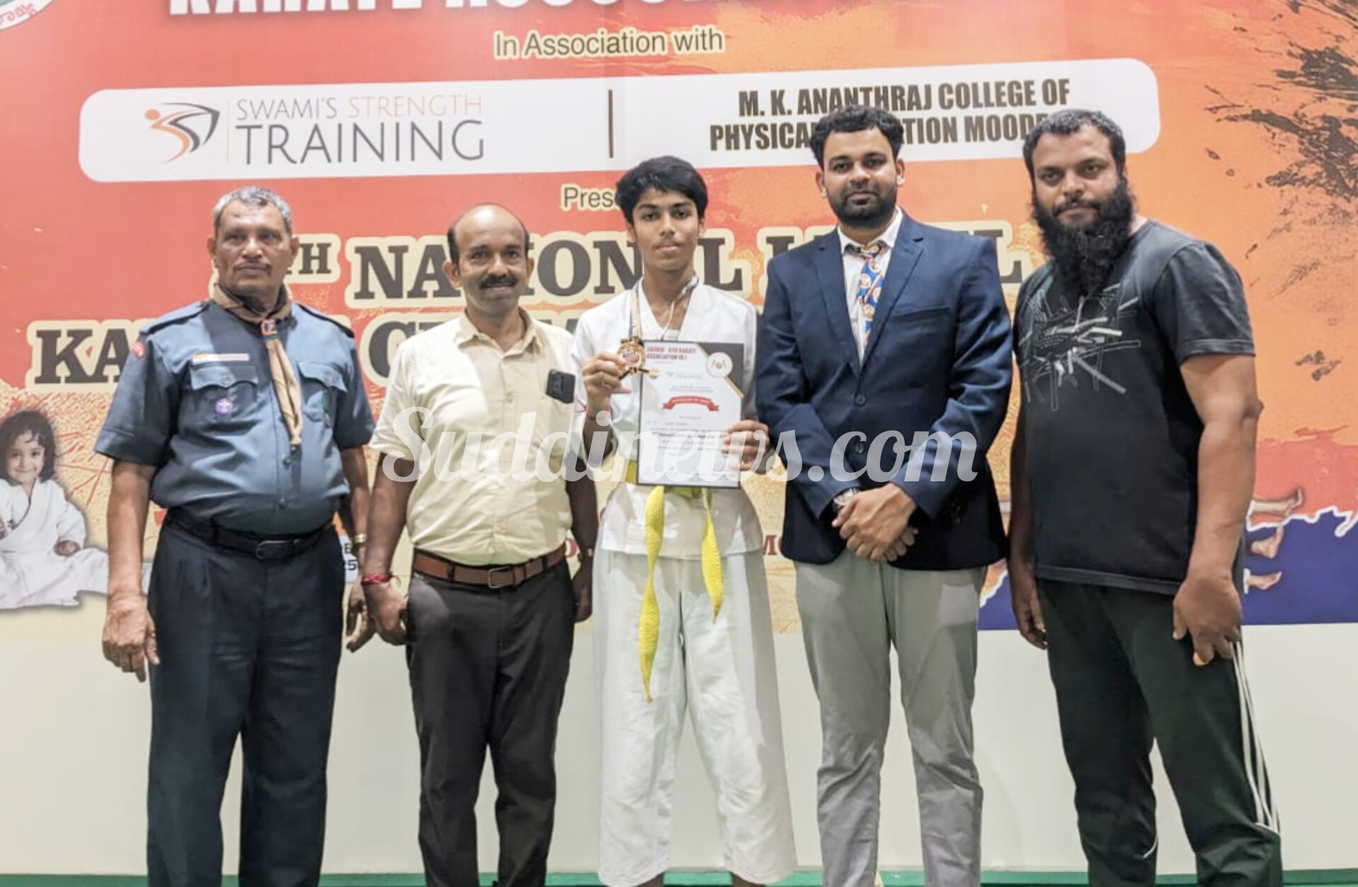 ಬೆಳ್ತಂಗಡಿ: ಮೂಡಬಿದ್ರೆ ಕನ್ನಡ ಭವನದಲ್ಲಿ ಅ. 25ರಂದು ನಡೆದ ಶೋರಿನ್ ರ್ಯೂ ಕರಾಟೆ ಅಸೋಶಿಯೇಶನ್ ಇಂಡಿಯಾ ಮತ್ತು ಮೂಡಬಿದ್ರೆ ಎಂ.ಕೆ.ಅನಂತರಾಜ್ ದೈಹಿಕ ಶಿಕ್ಷಣ ಮಹಾವಿದ್ಯಾಲಯ ಆಶ್ರಯದಲ್ಲಿ ನಡೆದ 8ನೇ ಆಲ್ ಇಂಡಿಯಾ ಕರಾಟೆ ಚಾಂಪಿಯನ್ ಶಿಪ್ ನಲ್ಲಿ ಬೆಳ್ತಂಗಡಿ ಶ್ರೀ ಗುರುದೇವ ಪದವಿ ಪೂರ್ವ ಕಾಲೇಜಿನ ದ್ವಿತೀಯ ಪಿಯುಸಿ ವಿದ್ಯಾರ್ಥಿ ಪ್ರಜ್ಞಾನ್ ಪ್ರಥಮ ಸ್ಥಾನ ಪಡೆದು ಸ್ವರ್ಣ ಪದಕವನ್ನು ಪಡೆದಿರುತ್ತಾರೆ.