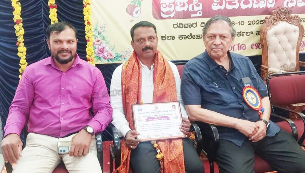 ದಕ್ಷಿಣ ಕನ್ನಡ ಜಿಲ್ಲೆಯಿಂದ ಆಯ್ಕೆ ಆಗಿ ಬೆಂಗಳೂರಿನ ಪ್ರಶಸ್ತಿ ವಿತರಣಾ ಸಮಾರಂಭದಲ್ಲಿ ನಿವೃತ್ತ ನ್ಯಾಯಮೂರ್ತಿ ಹಾಗೂ ಮಾಜಿ ಲೋಕಾಯುಕ್ತ ಸಂತೋಷ್ ಹೆಗಡೆಯವರ ಸಮ್ಮುಖದಲ್ಲಿ ರಾಜ್ಯ ಮಟ್ಟದ ಉತ್ತಮ ಶಿಕ್ಷಕ ರತ್ನ ಪ್ರಶಸ್ತಿ ಸ್ವೀಕರಿಸಿದರು.