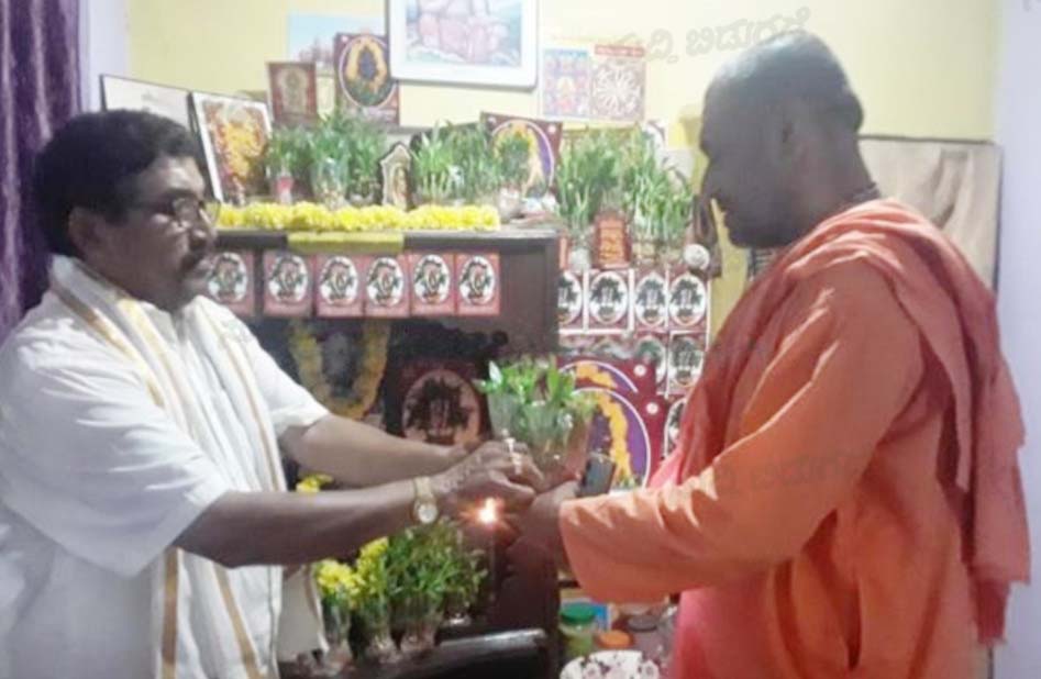 ಬೆಳ್ತಂಗಡಿ: ಉಪ್ಪಿನಂಗಡಿ ಕೈಲಾರು ವಾಸ್ತುಗಿಡ ಸನ್ನಿಧಿಗೆ ಬೆಂಗಳೂರಿನ ಸೋಲೂರು ಮಠದ ಆರ್ಯಈಡಿಗ ಮಹಾಸಂಸ್ಥಾನದ ಪೀಠಾಧ್ಯಕ್ಷ ವಿಖ್ಯಾತನಂದ ಸ್ವಾಮೀಜಿ ಅವರು ಭೇಟಿ ನೀಡಿ, ಕೈಲಾರು ರಾಜಗೋಪಾಲ ಭಟ್ ಅವರಿಂದ ವಾಸ್ತುಗಿಡವನ್ನು ಪಡೆದುಕೊಂಡರು.
