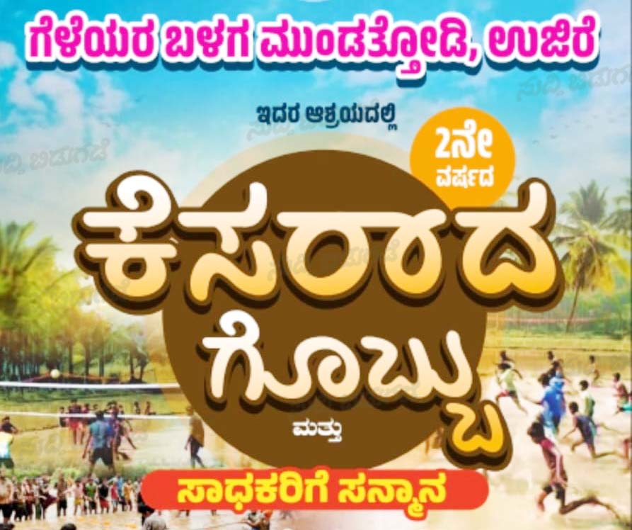 ನ-16: ಉಜಿರೆ, ಮುಂಡತ್ತೋಡಿ ಗೆಳೆಯರ ಬಳಗದಿಂದ ಕೆಸರ್ ದ ಗೊಬ್ಬು ಮತ್ತು ಸಾಧಕರಿಗೆ ಸನ್ಮಾನ