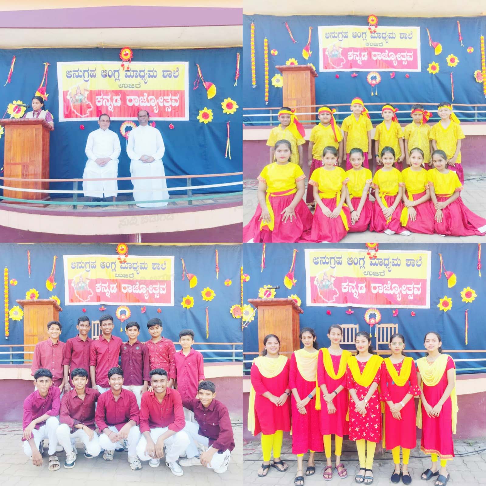 ಉಜಿರೆ: ಅನುಗ್ರಹ ಆಂಗ್ಲ ಮಾಧ್ಯಮ ಶಾಲೆಯಲ್ಲಿ ನ.1ರಂದು ಕನ್ನಡ ರಾಜ್ಯೋತ್ಸವವನ್ನು ಬಹಳ ವಿಜೃಂಭಣೆಯಿಂದ ಆಚರಿಸಲಾಯಿತು. ಕಾರ್ಯಕ್ರಮದ ಅಧ್ಯಕ್ಷತೆಯನ್ನು ಶಾಲಾ ಸಂಚಾಲಕ ಫಾ! ಅಬೆಲ್ ಲೋಬೊ ಅವರು ವಹಿಸಿಕೊಂಡಿದ್ದರು. ಕಾರ್ಯಕ್ರಮದಲ್ಲಿ ಶಾಲಾ ಪ್ರಾಂಶುಪಾಲ ಫಾ ವಿಜಯ್ ಲೋಬೊ, ಶಾಲಾ ಶಿಕ್ಷಕ ವೃಂದ ಹಾಗೂ ವಿದ್ಯಾರ್ಥಿಗಳು ಭಾಗವಹಿಸಿದ್ದರು. ಶಾಲಾ ಸಂಚಾಲಕರು ರಾಷ್ಟ್ರಧ್ವಜ ಹಾಗೂ ನಾಡ ಧ್ವಜವನ್ನು ಆರೋಹಿಸಿದರು.