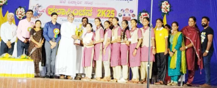 ಬೆಳ್ತಂಗಡಿ: ಮಡಂತ್ಯಾರು ಸೇಕ್ರೆಡ್ ಹಾರ್ಟ್ ಅನುದಾನಿತ ಪದವಿ ಪೂರ್ವ ಮಹಾವಿದ್ಯಾಲಯದ ಹಳೆ ವಿದ್ಯಾರ್ಥಿ ಸಂಘದಿಂದ ನ. 2ರಂದು ಕಲಾ ಸಿಂಚನ 2025 ಪ್ರೌಢಶಾಲಾ ವಿದ್ಯಾರ್ಥಿಗಳಿಗೆ ಜನಪದ ಸಮೂಹ ನೃತ್ಯವನ್ನುಆಯೋಜಿಸಲಾಗಿತ್ತು. ಈ ಸ್ಪರ್ಧೆಯಲ್ಲಿ ಉಜಿರೆಯ ಅನುಗ್ರಹ ಆಂಗ್ಲ ಮಾಧ್ಯಮ ಪ್ರೌಢಶಾಲಾ ವಿಭಾಗದ ವಿದ್ಯಾರ್ಥಿನಿಯರಾದ ನಿಶಾನ್ಯ, ಅನುಶ್ರೀ, ಅದಿತಿ, ಅಭಿಜ್ಞಾ, ಸಾನ್ವಿ, ವರ್ಷಿತ, ಕೀರ್ತನ, ಏಂಜಲಿನ್ ಭಾಗವಹಿಸಿ ಪ್ರಥಮ ಸ್ಥಾನವನ್ನು ಪಡೆದು ಪ್ರಶಸ್ತಿಯನ್ನು ತಮ್ಮ ಮುಡಿಗೇರಿಸಿಕೊಂಡಿದ್ದಾರೆ. ವಿಜೇತ ವಿದ್ಯಾರ್ಥಿನಿಯರನ್ನು ಶಾಲಾ ಸಂಚಾಲಕ ಫಾ. ಅಬೆಲ್ ಲೋಬೊ, ಶಾಲಾ ಪ್ರಾಂಶುಪಾಲ ಫಾ. ವಿಜಯ್ ಲೋಬೊ ಹಾಗೂ ಶಿಕ್ಷಕ ವೃಂದದವರು ಅಭಿನಂದಿಸಿದ್ದಾರೆ.