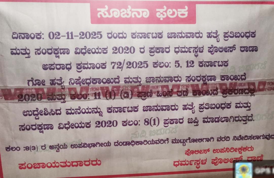 ಬೆಳ್ತಂಗಡಿ: ಪಟ್ರಮೆ ಗ್ರಾಮದ ಪಟ್ಟೂರಿನಲ್ಲಿ ಕಾರಿನಲ್ಲಿ ಮೂರು ದನದ ಕರುಗಳನ್ನು ಸಾಗಾಟ ಮಾಡುತ್ತಿದ್ದ ಸಂದರ್ಭದಲ್ಲಿ ಪೊಲೀಸರಿಗೆ ಸಿಕ್ಕಿ ಬಿದ್ದಿದ್ದ ಪ್ರಕರಣಕ್ಕೆ ಸಂಬಂಧಿಸಿದಂತೆ ಧರ್ಮಸ್ಥಳ ಠಾಣಾ ಪೊಲೀಸರು ಓರ್ವ ಆರೋಪಿಯ ಮನೆಯನ್ನು ಮುಟ್ಟುಗೋಲು ಹಾಕಿದ್ದಾರೆ. ಉಳ್ಳಾಲ ತಾಲೂಕಿನ ಖಲೀಲ್ ಯಾನೆ ತೌಸೀಫ್ (38) ಹಾಗೂ ಮಹಮ್ಮದ್ ಸಿನಾನ್ (25) ಪ್ರಕರಣದ ಆರೋಪಿಗಳಾಗಿದ್ದು ಇವರ ಪೈಕಿ ಸಜೀಪನಡು ಗ್ರಾಮದ ತಂಚಿಬೆಟ್ಟುನಲ್ಲಿರುವ ಖಲೀಲ್ ಯಾನೆ ತೌಸೀಫ್ ಮನೆಯಲ್ಲಿ ದನವನ್ನು ಮಾಂಸ ಮಾಡಲಾಗುತ್ತಿದ್ದ ಹಿನ್ನೆಲೆಯಲ್ಲಿ ಈತನ ಮನೆಯನ್ನು ಮುಟ್ಟುಗೋಲು ಹಾಕಲಾಗಿದೆ. ಮನೆಯನ್ನು ಮುಟ್ಟುಗೋಲು ಹಾಕುವುದಕ್ಕೆ ಪೊಲೀಸರು ಸಹಾಯಕ ಕಮಿಷನರ್ ಅವರಿಗೆ ವಿನಂತಿಸಿದ್ದರು. ಅವರ ಆದೇಶದಂತೆ ಮುಟ್ಟುಗೋಲು ಕಾರ್ಯ ನಡೆಸಲಾಗಿದೆ.