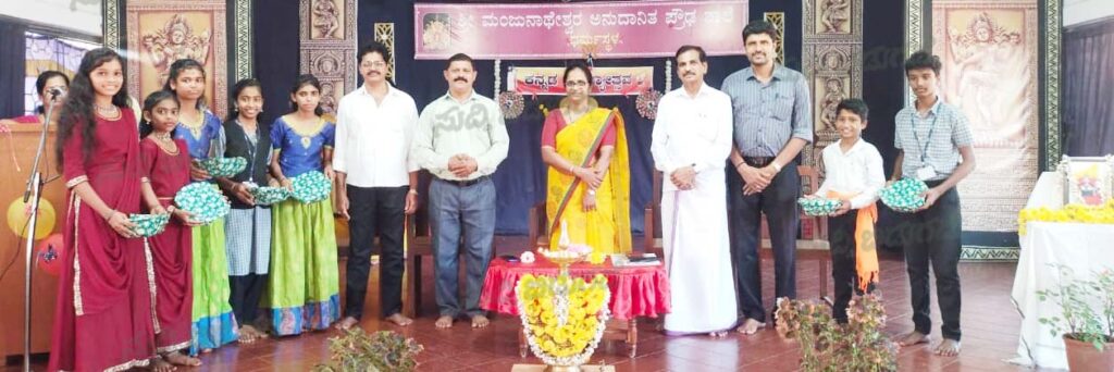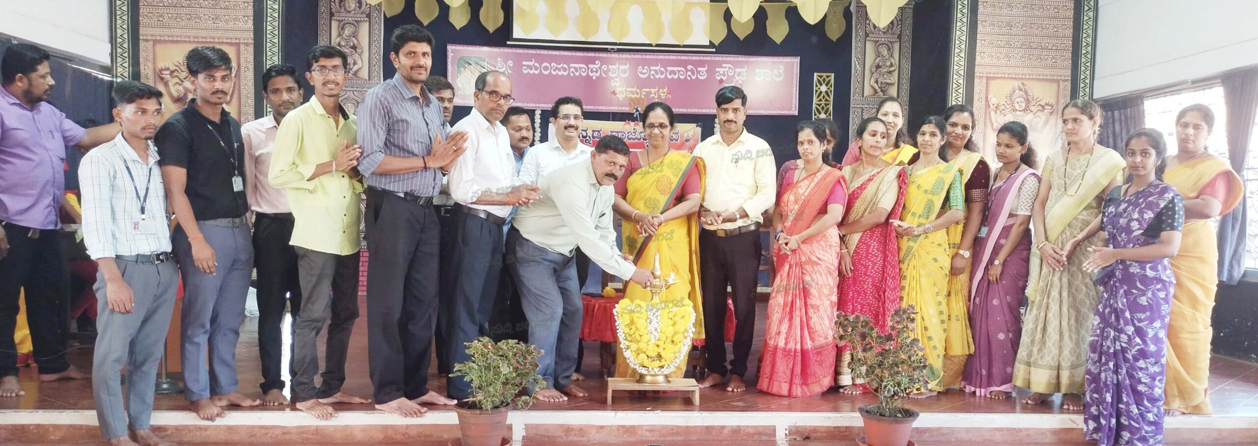 ಧರ್ಮಸ್ಥಳ: ಶ್ರೀ ಮಂಜುನಾಥೇಶ್ವರ ಅನುದಾನಿತ ಪ್ರೌಢಶಾಲೆಯಲ್ಲಿ ನ.1ರಂದು ಕರ್ನಾಟಕ ರಾಜ್ಯೋತ್ಸವ ಆಚರಿಸಲಾಯಿತು. ಮುಖ್ಯ ಅತಿಥಿ, ಉಜಿರೆಯ ಶ್ರೀ ಧ.ಮಂ. ಅನುದಾನಿತ ಸೆಕೆಂಡರಿ ಶಾಲೆಯ ಕನ್ನಡ ಶಿಕ್ಷಕ ರಾಧಾಕೃಷ್ಣ ಅವರು ಮಾತನಾಡಿ, “ಪರಭಾಷಾ ವ್ಯಾಮೋಹಕ್ಕೆ ಒಳಗಾಗದೆ ಕನ್ನಡ ಭಾಷೆಯನ್ನು ಉಳಿಸಿ, ಬೆಳೆಸುವುದು ನಮ್ಮೆಲ್ಲರ ಆದ್ಯ ಕರ್ತವ್ಯವಾಗಿದೆ” ಎಂದರು.