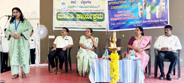 ಬೆಳ್ತಂಗಡಿ: ದಕ್ಷಿಣ ಕನ್ನಡ ಜಿಲ್ಲಾ ಕೇಂದ್ರ ಮಂಗಳೂರು ಸಹಕಾರಿ ಬ್ಯಾಂಕ್ ನ ಬೆಳ್ತಂಗಡಿ ಶಾಖೆಯಲ್ಲಿ ನಬಾರ್ಡ್ ಸಹಯೋಗದೊಂದಿಗೆ ಸ್ವ-ಸಹಾಯ ಗುಂಪು ಮತ್ತು ಜಂಟಿ ಭದ್ರತಾ ಗುಂಪುಗಳಿಗೆ ಸಾಲ ಸಂಯೋಜನೆ ಬಗ್ಗೆ ಮಾಹಿತಿ ಕಾರ್ಯಕ್ರಮವನ್ನು ಬ್ಯಾಂಕಿನ ಬೆಳ್ತಂಗಡಿ ಶಾಖೆಯ ಸಭಾಂಗಣದಲ್ಲಿ ನ.7ರಂದು ಆಯೋಜಿಸಲಾಯಿತು.
