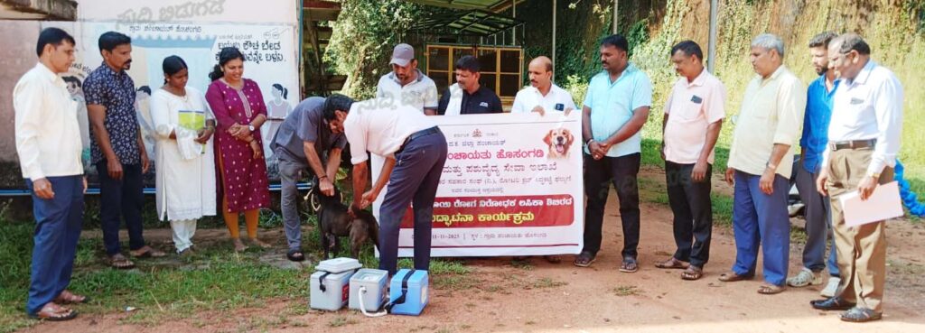 ಹೊಸಂಗಡಿ: ಗ್ರಾಮ ಪಂಚಾಯತ್, ಪಶುಪಾಲನೆ ಮತ್ತು ಪಶುವೈದ್ಯ ಸೇವಾ ಇಲಾಖೆ, ರೋಟರಿ ಕ್ಲಬ್ ಸಿದ್ಧಕಟ್ಟೆ ಪಲ್ಗುಣಿ, ಪೆರಿಂಜೆ ಹಾಲು ಉತ್ಪಾದಕರ ಸಹಕಾರ ಸಂಘ ಇವರ ಸಹಯೋಗದಲ್ಲಿ ಗ್ರಾಮ ಪಂಚಾಯತ್ ನಲ್ಲಿ ನ. 11ರಂದು ನಡೆದ ಉಚಿತ ಹುಚ್ಚು ನಾಯಿ ರೋಗ ನಿರೋಧಕ ಲಸಿಕಾ ಶಿಬಿರ ನಡೆಯಿತು. ಉದ್ಘಾಟನಾ ಕಾರ್ಯಕ್ರಮ ಗ್ರಾಮ ಪಂಚಾಯತ್ ಅಧ್ಯಕ್ಷ ಜಗದೀಶ್ ಹೆಗ್ಡೆ ಅವರ ಅಧ್ಯಕ್ಷತೆಯಲ್ಲಿ ನಡೆಯಿತು.
