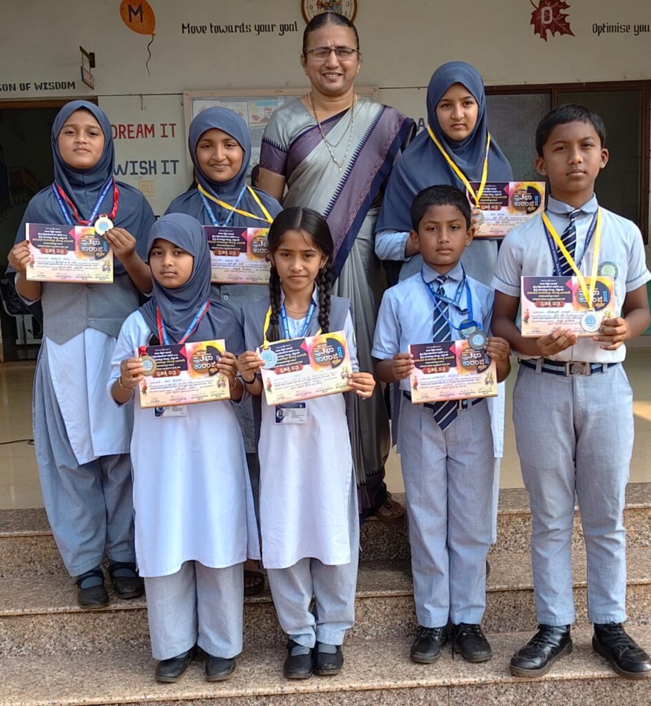 ನಡ: ಮಂಜೊಟ್ಟಿ ಸರಕಾರಿ ಕಿರಿಯ ಪ್ರಾಥಮಿಕ ಶಾಲೆಯಲ್ಲಿ ನ. 12ರಂದು ನಡೆದ ಬಂಗಾಡಿ ವಲಯ ಮಟ್ಟದ ಪ್ರತಿಭಾ ಕಾರಂಜಿ ಸ್ಪರ್ಧೆಯಲ್ಲಿ ಮಂಜೊಟ್ಟಿ ರಝಾ ಗಾರ್ಡನ್ ಸ್ಟಾರ್ ಲೈನ್ ಆಂಗ್ಲ ಮಾಧ್ಯಮ ಶಾಲೆ ವಿದ್ಯಾರ್ಥಿಗಳಾದ 6ನೇ ತರಗತಿಯ ಫಾತಿಮತ್ ಝಿಯ ಅರಬಿಕ್ ಪಠಣ ವಿಭಾಗದ ಸ್ಪರ್ಧೆಯಲ್ಲಿ ಪ್ರಥಮ ಸ್ಥಾನವನ್ನು, ನಾಲ್ಕನೇ ತರಗತಿಯ ಹನ ಫಾತಿಮಾ ಅರಬಿಕ್ ಪಠಣ ವಿಭಾಗದಲ್ಲಿ ಪ್ರಥಮ ಸ್ಥಾನವನ್ನು, ಆರನೇ ತರಗತಿಯ ಆಫೀಫಾ ಸನಾ ಇಂಗ್ಲಿಷ್ ಕಂಠಪಾಠದಲ್ಲಿ ದ್ವಿತೀಯ ಸ್ಥಾನವನ್ನು, 7ನೇ ತರಗತಿಯ ರಿಯಾ ಫಾತಿಮಾ ಹಿಂದಿ ಕಂಠಪಾಠದಲ್ಲಿ ದ್ವಿತೀಯ ಸ್ಥಾನವನ್ನು, 7ನೇ ತರಗತಿಯ ಮೊಹಮ್ಮದ್ ಮಾಝಿನ್ ಕನ್ನಡ ಕಂಠಪಾಠದಲ್ಲಿ ದ್ವಿತೀಯ ಸ್ಥಾನವನ್ನು, ನಾಲ್ಕನೇ ತರಗತಿಯ ನಿಹಾರಿಕ ಭಗವದ್ಗೀತಾ ಪಠಣದಲ್ಲಿ ದ್ವಿತೀಯ ಸ್ಥಾನವನ್ನು, ಪಡೆದು ತಾಲೂಕು ಮಟ್ಟಕ್ಕೆ ಆಯ್ಕೆಯಾಗಿರುತ್ತಾರೆ. ಹಾಗೂ ಎರಡನೇ ತರಗತಿಯ ಮೊಹಮ್ಮದ್ ಶಮ್ಮಾಝ್ ಇಂಗ್ಲಿಷ್ ಕಂಠ ಪಾಠದಲ್ಲಿ ತೃತೀಯ ಸ್ಥಾನವನ್ನು ಪಡೆದಿರುತ್ತಾರೆ. ಶಾಲಾ ಆಡಳಿತ ಟ್ರಸ್ಟ್, ಮುಖ್ಯೋಪಾಧ್ಯಾಯರು ಹಾಗೂ ಶಿಕ್ಷಕ ವೃಂದದವರು ವಿಜೇತ ವಿದ್ಯಾರ್ಥಿಗಳನ್ನು ಅಭಿನಂದಿಸಿದರು.