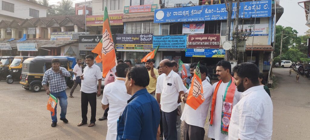 ಬೆಳ್ತಂಗಡಿ: ಬಿಹಾರದ 243 ವಿಧಾನಸಭಾ ಕ್ಷೇತ್ರದಲ್ಲಿ 207 ಸ್ಥಾನವನ್ನು ಪಡೆದು ಆಡಳಿತದ ಚುಕ್ಕಾನಿ ಹಿಡಿದಿದೆ. ಆಡಳಿತಾರೂಢ ಎನ್ಡಿಎ ಮತ್ತು ವಿಪಕ್ಷಗಳ ಮಹಾಘಟಬಂಧನ್ ನಡುವೆ ಪೈಪೋಟಿ ಏರ್ಪಟ್ಟಿದೆ. ಬಹುಮತಕ್ಕೆ 122 ಸ್ಥಾನಗಳ ಅಗತ್ಯವಿದ್ದು, ಎರಡೂ ಮೈತ್ರಿಕೂಟಗಳು ಜಿದ್ದಾಜಿದ್ದಿನ ಹೋರಾಟ ನಡೆಸುತ್ತಿವೆ.ಇದೀಗ ಎನ್ಡಿಎ ಸರ್ಕಾರವು ಸ್ಪಷ್ಟ ಬಹುಮತವನ್ನು ಪಡೆದ ಹಿನ್ನೆಲೆಯಲ್ಲಿ ಬೆಳ್ತಂಗಡಿ ಬಿಜೆಪಿ ಹಾಗೂ ಹಿಂದೂ ಕಾರ್ಯಕರ್ತರು ನ. 14ರಂದು ಬೆಳ್ತಂಗಡಿ ಬಿಜೆಪಿ ಮಂಡಲ ಕಚೇರಿ ಮುಂಭಾಗದಲ್ಲಿ ಸಂಭ್ರಮಾಚರಣೆಯನ್ನು ನಡೆಸಿದರು.