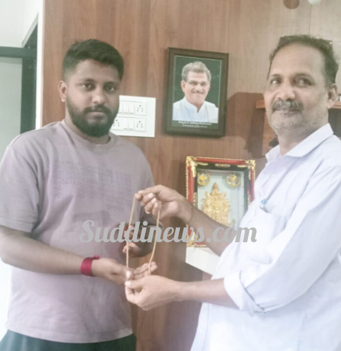 ಧರ್ಮಸ್ಥಳ: ಸುಮಾರು 40 ಗ್ರಾಂ ತೂಕದ ಚಿನ್ನದ ಚೈನ್ ಬೊಳ್ಯ ಸ್ವಾತಿ ರೆಸಿಡೆನ್ಸಿ ಮಾಲಕ ಲ | ಪ್ರಭಾಕರ ಗೌಡ ಬೊಳ್ ರವರು ಹಿಂತಿರುಗಿಸಿ ಕೊಟ್ಟು ಮಾನವೀಯತೆ ಮೆರೆದಿದ್ದಾರೆ.