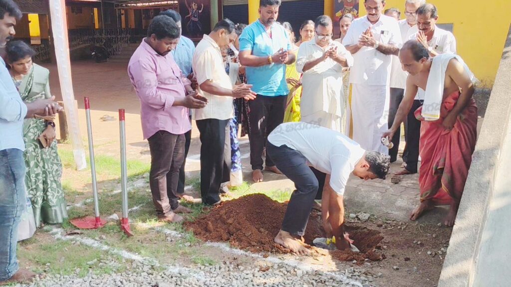 ಧರ್ಮಸ್ಥಳ: ಕನ್ಯಾಡಿ ಸರಕಾರಿ ಉನ್ನತೀಕರಿಸಿದ ಹಿರಿಯ ಪ್ರಾಥಮಿಕ ಶಾಲೆಯ ದಾನಿಗಳಾದ ರಾಧಾಕೃಷ್ಣ ಗುಲ್ಲೋಡಿ ಅವರ ಸಹಕಾರದಿಂದ ನ. 21ರಂದು ಯುಕೆಜಿ ಕೊಠಡಿಗೆ ಶಿಲಾನ್ಯಾಸ ಕಾರ್ಯಕ್ರಮವನ್ನು ಸ್ಥಾಯಿ ಸಮಿತಿ ಅಧ್ಯಕ್ಷರು ಹಾಗೂ ಧರ್ಮಸ್ಥಳ ಗ್ರಾಮ ಪಂಚಾಯತ್ ಉಪಾಧ್ಯಕ್ಷ ಪಿ. ಶ್ರೀನಿವಾಸ ರಾವ್, ಶಾಲಾ ಅಭಿವೃದ್ಧಿ ಸಮಿತಿಯ ಅಧ್ಯಕ್ಷ ಕೆ. ನಂದ ಅವರ ಉಪಸ್ಥಿತಿಯಲ್ಲಿ ನೆರವೇರಿತು.