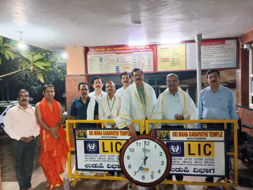 ಕೊಕ್ಕಡ: ನಾಡಿನ ಪ್ರಸಿದ್ದ ಯಾತ್ರಾ ಸ್ಥಳ ಸೌತಡ್ಕ ಶ್ರೀ ಮಹಾಗಣಪತಿ ದೇವಸ್ಥಾನಕ್ಕೆ ಭಾರತೀಯ ಜೀವ ವಿಮಾ ನಿಗಮ (ಎಲ್ಐ ಸಿ) ಉಡುಪಿ ವಿಭಾಗದಿಂದ ಯಾತ್ರಾರ್ಥಿಗಳ ಸುಗಮ ಸಂಚಾರಕ್ಕಾಗಿ ಸ್ಟೀಲ್ ತಡೆಗೇಟುಗಳು ಹಾಗೂ ಬೃಹತ್ ಗೋಡೆ ಗಡಿಯಾರವೊಂದನ್ನು ಕೊಡುಗೆಯಾಗಿ ನೀಡಲಾಯಿತು.