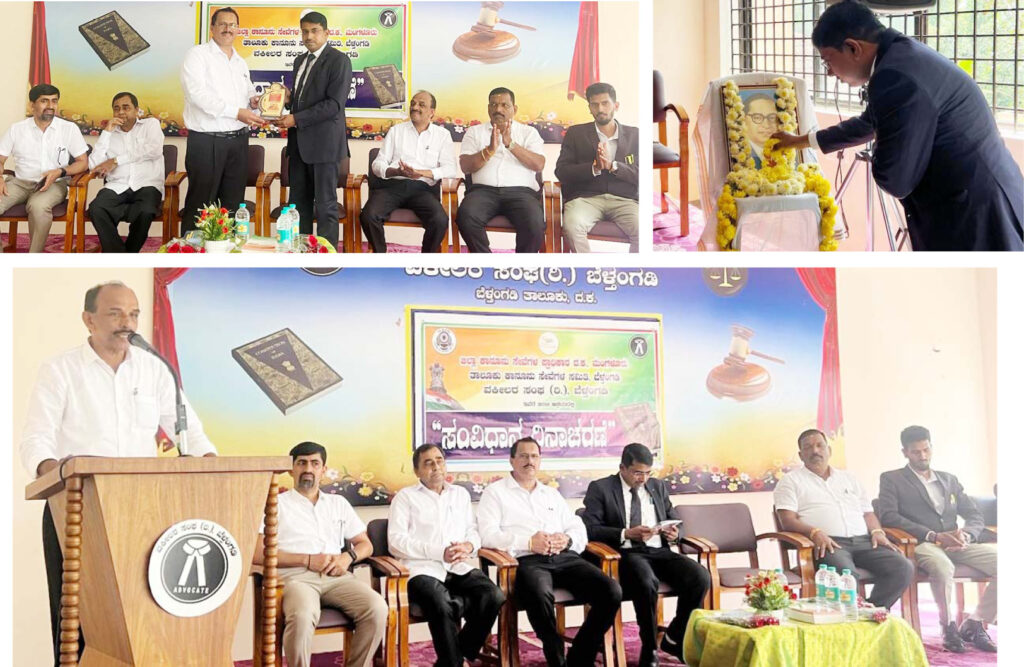ಬೆಳ್ತಂಗಡಿ: ಮಂಗಳೂರಿನ ಜಿಲ್ಲಾ ಕಾನೂನು ಸೇವೆಗಳ ಪ್ರಾಧಿಕಾರ, ತಾಲೂಕು ಕಾನೂನು ಸೇವೆಗಳ ಸಮಿತಿ ಮತ್ತು ಬೆಳ್ತಂಗಡಿ ವಕೀಲರ ಸಂಘದ ಸಂಯುಕ್ತ ಆಶ್ರಯದಲ್ಲಿ ಸಂವಿಧಾನ ದಿನಾಚರಣೆ ಕಾರ್ಯಕ್ರಮ ನ.27 ರಂದು ವಕೀಲರ ಭವನದಲ್ಲಿ ನಡೆಯಿತು.