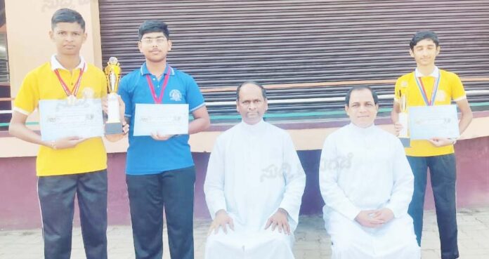 ವೈಯುಕ್ತಿಕ ವಿಭಾಗದಲ್ಲಿ ಪಂಚಮ್ ತೃತೀಯ ಸ್ಥಾನವನ್ನು ಪಡೆದಿರುತ್ತಾರೆ. ಗುಂಪು ವಿಭಾಗದಲ್ಲಿ ಶಿವಪ್ರಸಾದ್ ಹಾಗೂ ಎಡ್ವಿನ್ ಫಾನ್ಸಿಸ್ ಪ್ರಥಮ ಸ್ಥಾನವನ್ನು ಪಡೆದು ರಾಜ್ಯಮಟ್ಟಕ್ಕೆ ಆಯ್ಕೆಯಾಗಿದ್ದಾರೆ. ಈ ವಿದ್ಯಾರ್ಥಿಗಳು ಮಾಡಿದ ಐ-ಈ ಎಂಬ ವಿಜ್ಞಾನ ಮಾದರಿಯು ಎಲ್ಲರ ಪ್ರಶಂಶೆಗೆ ಪಾತ್ರವಾಗಿದೆ. ರಾಜ್ಯಮಟ್ಟದ ಸ್ಫರ್ಧೆಯು ಧಾರವಾಡದಲ್ಲಿ ನಡೆಯಲಿರುವುದು. ವಿಜೇತ ವಿದ್ಯಾರ್ಥಿಗಳನ್ನು ಶಾಲಾ ಸಂಚಾಲಕರು, ಪ್ರಾಂಶುಪಾಲರು, ಶಿಕ್ಷಕರು ವೃಂದ ಹಾಗೂ ಶಾಲಾ ಅಭಿವೃದ್ಧಿ ಮಂಡಳಿಯವರು ಅಭಿನಂದಿಸಿದ್ದಾರೆ.