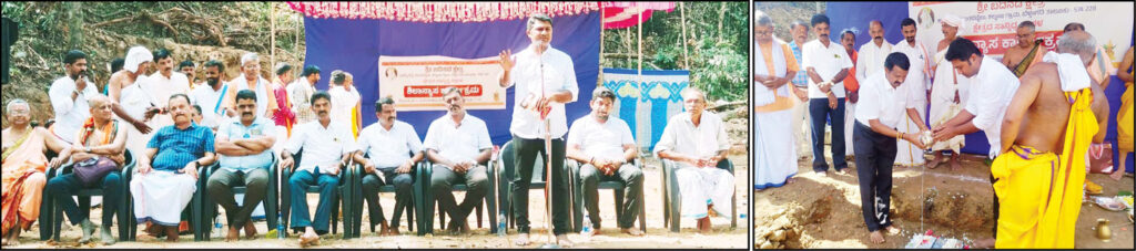 ಕಲ್ಮಂಜ: ಸುಮಾರು 600 ವರ್ಷಕ್ಕಿಂತಲೂ ಮೇಲ್ಪಟ್ಟು ಇತಿಹಾಸ ಇರುವ ಪಾಲುಬಿದ್ದ ಸ್ಥಿತಿಯಲ್ಲಿದ್ದ ಅನೇಕ ಕುರುಹುಗಳನ್ನು ಹೊಂದಿದ್ದ ಅಲೆಕ್ಕಿ ಅಂತರಬೈಲು ಬದಿನಡೆ ಕ್ಷೇತ್ರದಲ್ಲಿ ದೈವಜ್ಞರಿಂದ ಪ್ರಶ್ನಾ ಚಿಂತನೆ ನಡೆಸಿ ಕಂಡು ಬಂದಂತೆ ಉಳ್ಳಾಯ ಉಳ್ಳಾಲ್ತಿ ಮತ್ತು ಮೂರ್ತಿಳ್ಳಯ ಮತ್ತು ನಾಗದೇವರು, ಬ್ರಹ್ಮದೇವರುಗಳ ಸಾನಿಧ್ಯ ಜೀರ್ಣೋದ್ದಾರ ನ.28ರಂದು ಶ್ರೀ ರಾಮ ಕ್ಷೇತ್ರದ ಪೀಠಾಧೀಶ ಮಹಾಮಂಡಲೇಶ್ವರ 1008 ಶ್ರೀ ಸ್ವಾಮಿ ಸದ್ಗುರು ಬ್ರಹ್ಮಾನಂದ ಸರಸ್ವತಿ ಮಹಾರಾಜರವರ ಆಶೀರ್ವಾದಗಳೊಂದಿಗೆ, ಕ್ಷೇತ್ರದ ತಂತ್ರಿವರ್ಯರಾದ ಧರ್ಮಸ್ಥಳದ ವೇದಮೂರ್ತಿ ವಿಷ್ಣುಮೂರ್ತಿ ಹೆಬ್ಬಾರ್ ಮುಂಡ್ರುಪ್ಪಾಡಿ, ಕಲ್ಮಂಜ ಅಂತರ ಬೈಲು ಅನಂತೇಶ ಚಡಗ ಅವರ ಮಾರ್ಗದರ್ಶನ ಮತ್ತು ನೇತೃತ್ವದಲ್ಲಿ ರಕ್ಷಿತ್ ಶಿವರಾಮ್ ಅಧ್ಯಕ್ಷತೆಯಲ್ಲಿ ಶಿಲಾನ್ಯಾಸ ಕಾರ್ಯಕ್ರಮ ನಡೆಯಿತು.