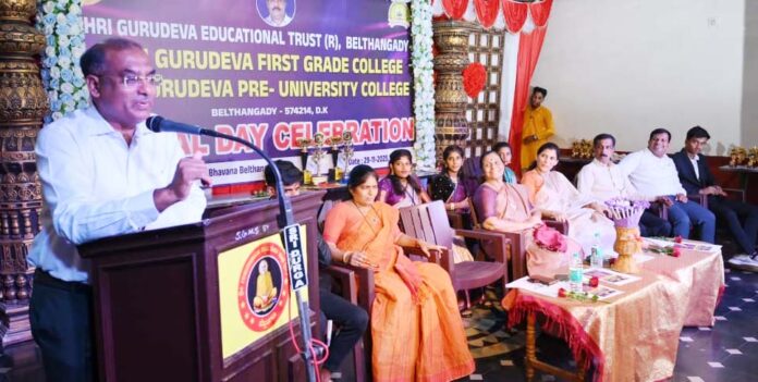 ಅವರು ನ. 29ರಂದು ಬೆಳ್ತಂಗಡಿ ಶ್ರೀ ಗುರುದೇವ ಕಾಲೇಜಿನ ವಾರ್ಷಿಕೋತ್ಸವ ಸಮಾರಂಭ ಉದ್ದೇಶಿಸಿ ಮಾತನಾಡಿದರು.