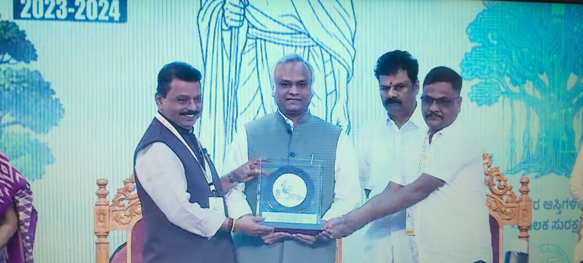 ಗಾಂಧಿ ಗ್ರಾಮ ಪುರಸ್ಕಾರ ಪ್ರಶಸ್ತಿ ಪಡೆದ ಕಾಶಿಪಟ್ಣ ಗ್ರಾಮ ಪಂಚಾಯತ್-ಪ್ರಶಸ್ತಿ ಸ್ವೀಕರಿಸಿದ ಪಂಚಾಯತ್ ಅಧ್ಯಕ್ಷ ಸತೀಶ್ ಕಾಶಿಪಟ್ಣ ಹಾಗೂ ಪಿಡಿಓ ರಾಘವೇಂದ್ರ ಪಾಟೀಲ್