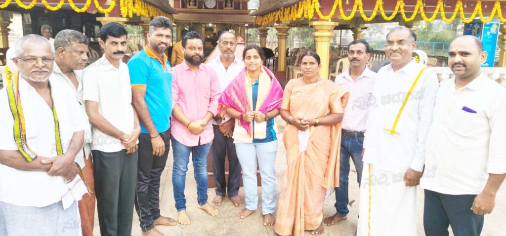 ಅಳದಂಗಡಿ: ಶ್ರೀ ಸತ್ಯದೇವತಾ ದೈವಸ್ಥಾನಕ್ಕೆ ಭಾರತೀಯ ಕಬಡ್ಡಿ ತಂಡದ ಧನಲಕ್ಷ್ಮೀ ಪೂಜಾರಿ ಡಿ.2ರಂದು ಭೇಟಿ ನೀಡಿ ಆಶೀರ್ವಾದ ಪಡೆದರು. ಆಡಳಿತದಾರ ಶಿವಪ್ರಸಾದ್ ಅಜಿಲರು ಉಪಸ್ಥಿತರಿದ್ದು, ಗೌರವಿಸಿದರು.