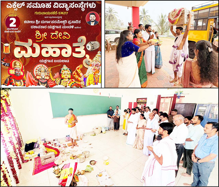 ಸಂಜೆ ನಡೆಯಲಿರುವ ಶ್ರೀ ದೇವಿ ಮಹಾತ್ಮೆ ಬಯಲಾಟದ ಪ್ರಯುಕ್ತ ವಿದ್ಯಾಸಾಗರ ಕ್ಯಾಂಪಸ್ನಲ್ಲಿ ಚೌಕಿ ಪೂಜೆ ನೆರವೇರಿದ್ದು, ಎಕ್ಸೆಲ್ ಶಿಕ್ಷಣ ಸಂಸ್ಥೆ ಅಧ್ಯಕ್ಷರಾದ ಸುಮಂತ್ ಕುಮಾರ್ ಜೈನ್, ಅವರ ತಂದೆ ಸತೀಶ್ ಕುಮಾರ್, ತಾಯಿ ಶುಭಲತಾ ಸತೀಶ್, ವಿದ್ಯಾಸಾಗರ ಕ್ಯಾಂಪಸ್ ಪ್ರಾಂಶುಪಾಲರಾದ ನವೀನ್ ಕುಮಾರ್ ಮರಿಕೆ, ಅರಮಲೆ ಬೆಟ್ಟ ಕ್ಯಾಂಪಸ್ ಪ್ರಾಂಶುಪಾಲರಾದ ಪ್ರಜ್ವಲ್ ಕಜೆ, ಪ್ರದೀಪ್ ಶೆಟ್ಟಿ, ಆನಂದ್ ಶೆಟ್ಟಿ, ಶಿಕ್ಷಕ ವರ್ಗ ಹಾಘೂ ಸಿಬ್ಬಂದಿ ವರ್ಗ ಉಪಸ್ಥಿತರಿದ್ದರು. ಯಕ್ಷಗಾನದ ಮುಂಚಿತವಾಗಿ ಅರಮಲೆ ಬೆಟ್ಟ ಕ್ಯಾಂಪಸ್ನಲ್ಲಿಯೂ ಮೆರವಣಿಗೆ ಸಹಿತ ಚೌಕಿ ಪೂಜೆ ನಡೆಯಲಿದೆ.