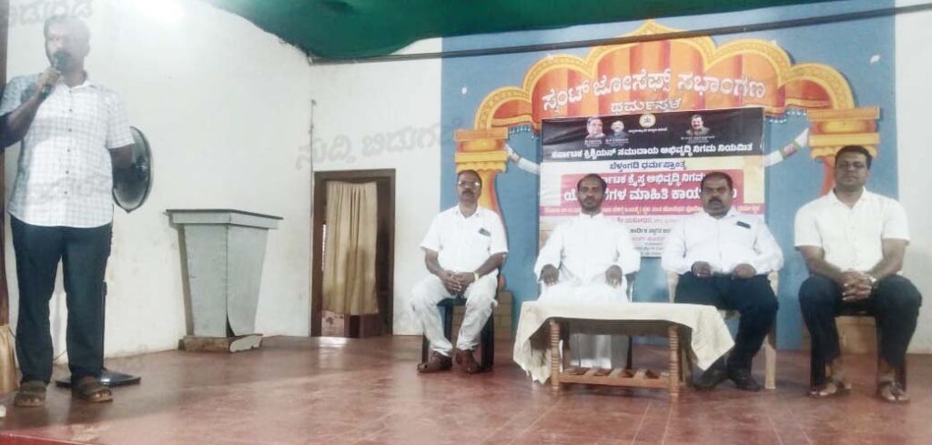 ಬೆಳ್ತಂಗಡಿ: ಕರ್ನಾಟಕ ಕ್ರಿಶ್ಚಿಯನ್ ಸಮುದಾಯ ಅಭಿವೃದ್ಧಿ ನಿಗಮದ ಯೋಜನೆಗಳ ಮಾಹಿತಿ ಕಾರ್ಯಾಕ್ರಮ ಧರ್ಮಸ್ಥಳ ಸೈಂಟ್ ಜೋಸೆಫ್ ಚರ್ಚ್ ಸಮುದಾಯ ಭವನದಲ್ಲಿ ಡಿ.7ರಂದು ನಡೆಯಿತು.