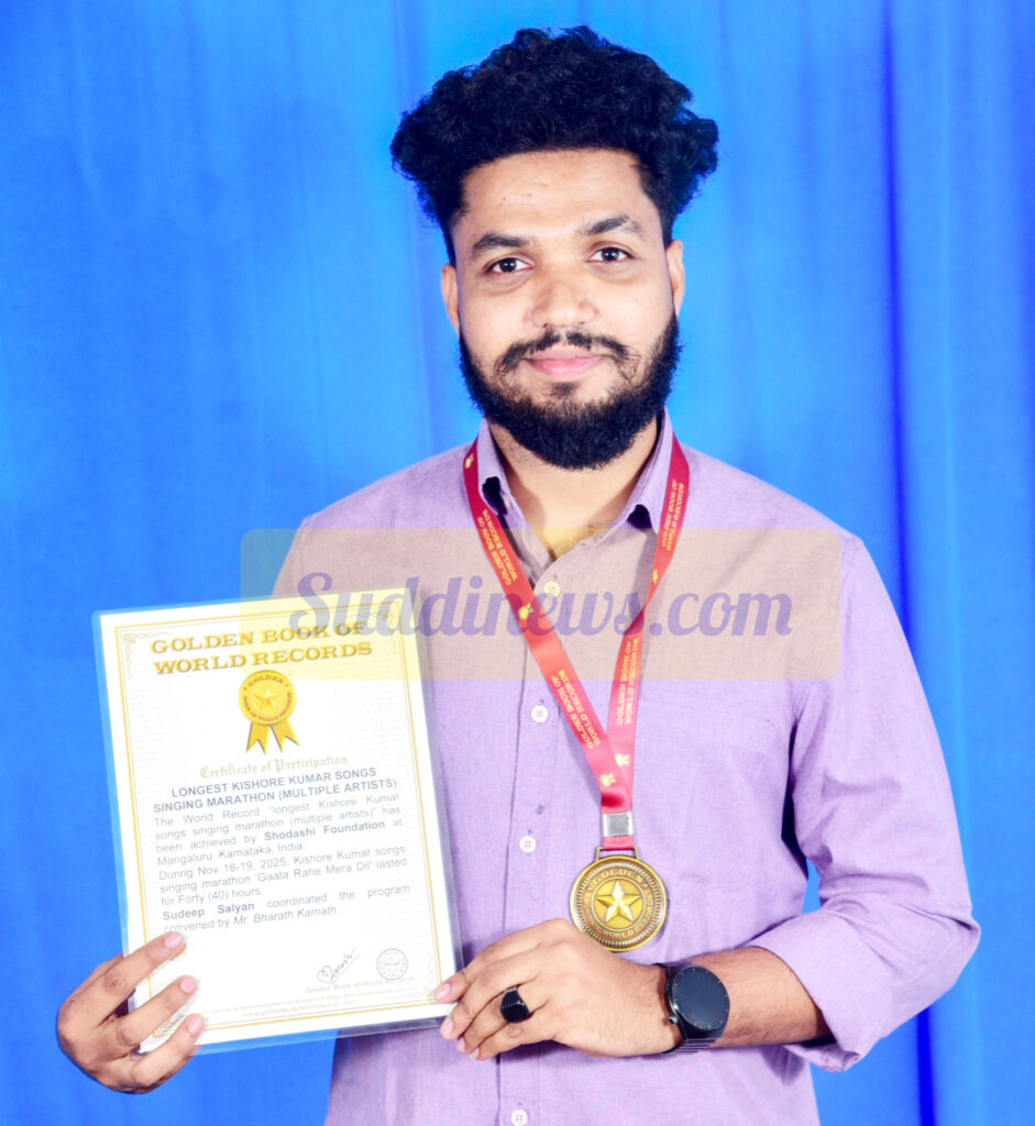 ಮಂಗಳೂರಿನಲ್ಲಿ ನಡೆದ ದಿ| ಕಿಶೋರ್ ಕುಮಾರ್ ಹಾಡುಗಳ ಗಾಯನ ದಾಖಲೆ, 100 ಗಾಯಕರು, ನಿರಂತರ 40 ಗಂಟೆಗಳ ಕಾಲ ಕರೋಕೆ ಸ್ವರೂಪದ ಗಾಯನ ಸ್ಪರ್ಧೆಯಲ್ಲಿ ಸಾಲ್ಯಾನ್ ಎಲ್ ಇಡಿ ಮಾಲಕ ಸುದೀಪ್ ಅವರು ತಮ್ಮ ಎಲ್ ಇಡಿ ಪ್ರದರ್ಶನವನ್ನು ಮಾಡುವ ಮೂಲಕ ಈ ದಾಖಲೆಯ ಪಾಲು ಪಡೆದಿದ್ದಾರೆ. ಸುದೀಪ್ ಸಾಲ್ಯಾನ್ ರವರು ಧ್ವನಿ ನ್ಯೂಸ್ ಚಾನೆಲ್ ನ ಪ್ರಧಾನ ಸಂಪಾದಕರಾಗಿದ್ದಾರೆ.
