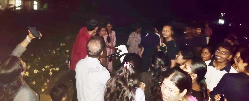 ಕಾಲೇಜಿನ ಭೌತಶಾಸ್ತ್ರ ವಿಭಾಗವು ವಿದ್ಯಾರ್ಥಿಗಳಲ್ಲಿ ಖಗೋಳ ವಿಜ್ಞಾನದ ಆಸಕ್ತಿ ಮತ್ತು ಕುತೂಹಲವನ್ನು ಹೆಚ್ಚಿಸುವ ಉದ್ದೇಶದಿಂದ ಸ್ನಾತಕೋತ್ತರ ಕೇಂದ್ರದ ಮುಂಭಾಗದ ಆವರಣದಲ್ಲಿ ಕಾರ್ಯಕ್ರಮವನ್ನು ಆಯೋಜಿಸಲಾಗಿತ್ತು.
