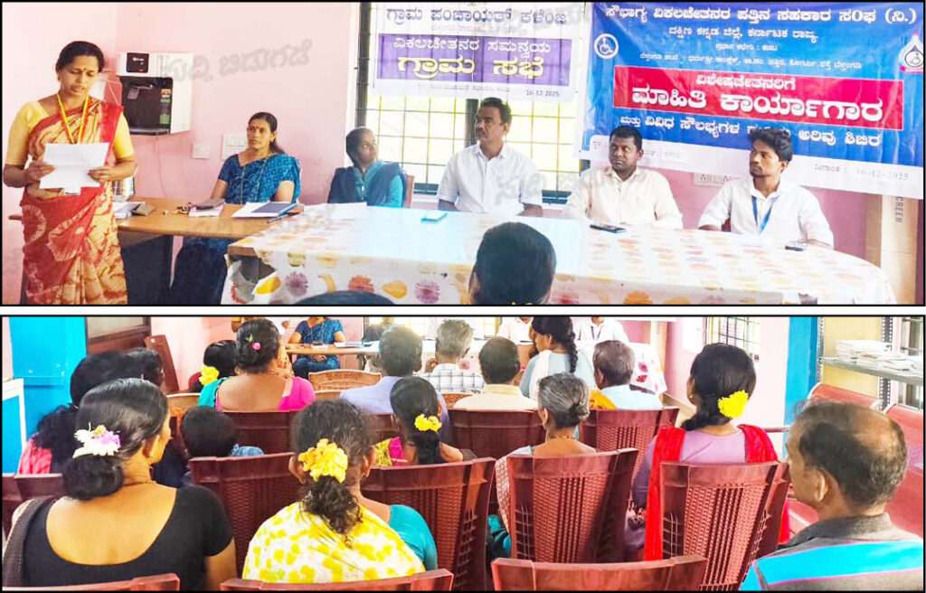 ಕಳೆಂಜ: ವಿಶ್ವ ವಿಕಲಚೇತನರ ದಿನಾಚರಣೆ’ ಯ ಪ್ರಯುಕ್ತ ಕಳೆಂಜ ಗ್ರಾಮ ಪಂಚಾಯತ್ ನಲ್ಲಿ 2025 – 26ನೇ ಸಾಲಿನ ವಿಕಲಚೇತನರ ಸಮನ್ವಯ ಗ್ರಾಮ ಸಭೆಯು ಸರ್ಕಾರದ ಆದೇಶದಂತೆ ಡಿ.16ರಂದು ಗ್ರಾಮ ಪಂಚಾಯತ್ ಕಚೇರಿಯಲ್ಲಿ ಪಂಚಾಯತ್ ಉಪಾಧ್ಯಕ್ಷ ವಿಶ್ವನಾಥ ಹೆಚ್. ಅವರ ಅಧ್ಯಕ್ಷತೆಯಲ್ಲಿ ನಡೆಯಿತು.